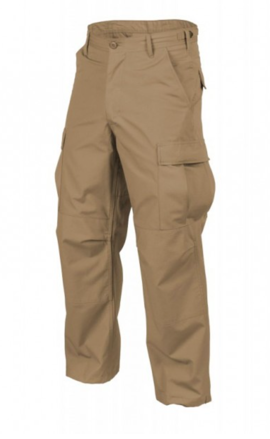 Los pantalones Helikon-Tex BDU (Battle Dress Uniform) son ergonómicos y funcionales y su característico diseño los hacen una clásica opción para aficionados al ejército. De corte recto y con prácticos y sencillos bolsillos, se adecuan al uso diario más exigente. Disponen de refuerzo en las rodillas y en la zona de los glúteos que les otorga gran resistencia, además de estar fabricados con tejido Ripstop, un material ligero resistente a la abrasión y de secado rápido. Las cintas de nailon en los bajos sirven para sujetar los pantalones a las piernas o las botas.