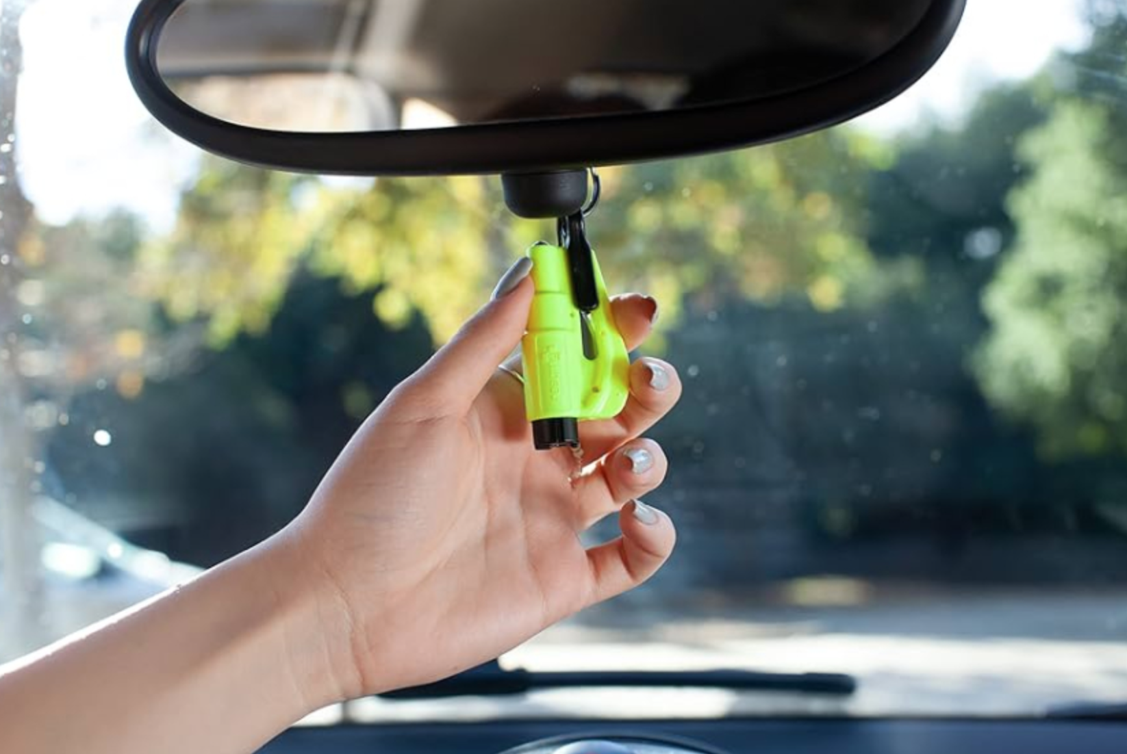 Incorpora una punta de acero endurecido que, al presionarla contra una ventana de coche, se activa automáticamente para romper el cristal. Esta funcionalidad facilita la salida del vehículo cuando las puertas están bloqueadas.