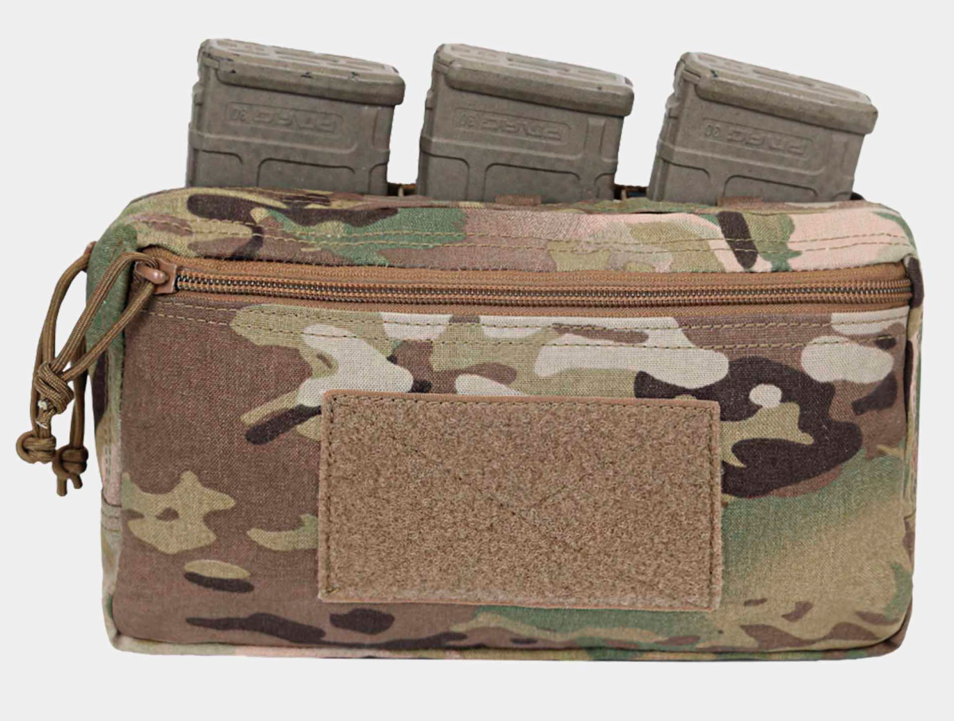 Su diseño permite un rápido acceso a los cargadores y además en la parte frontal contamos con un pouch de grandes dimensiones con 2 cremalleras YKK, podemos utililzarlo para transportar material sanitario, de navegación, herramientas multiusos, etc. En la parte interna nos encontramos un bolsillo de rejila que facilita la organización.