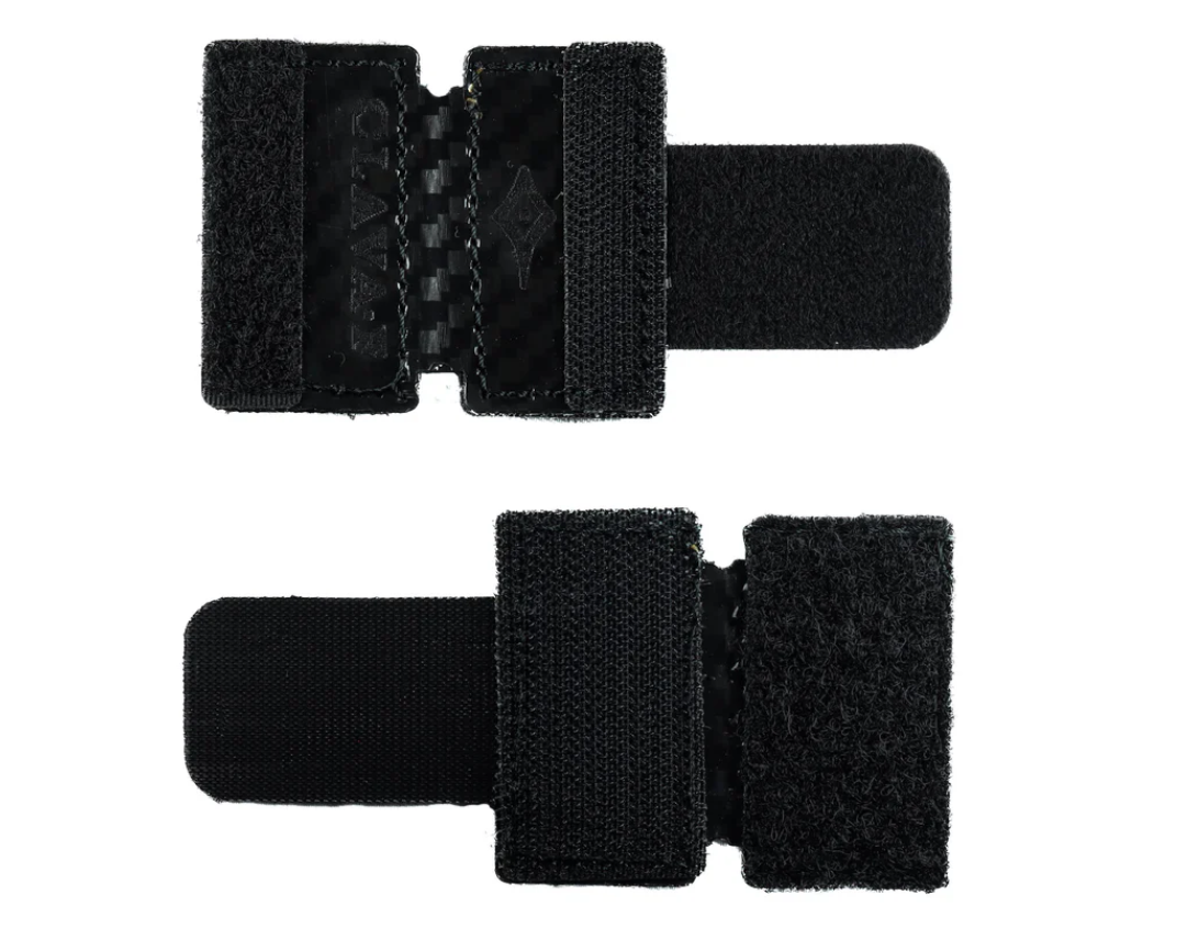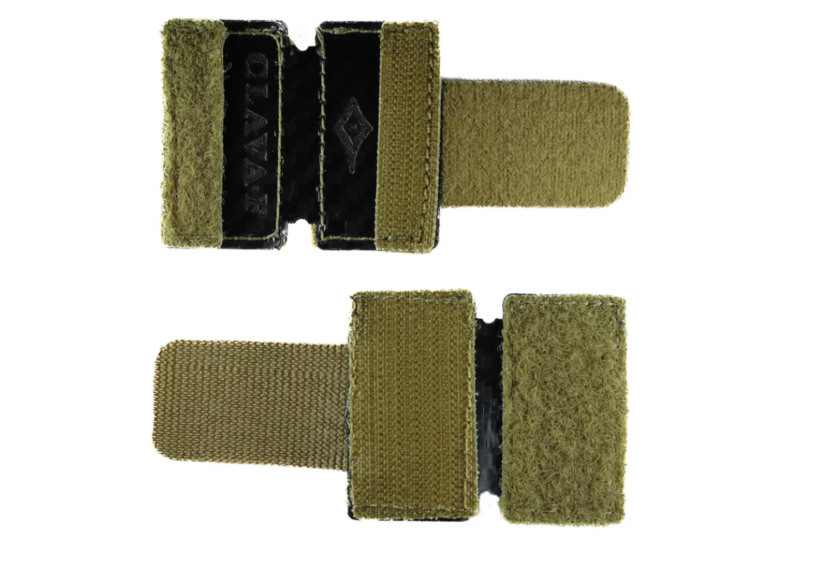 El Stopper consta de dos piezas idénticas de diseño simple que se fijan al velcro interior del cinturón táctico y abrazan las trabillas de la funda o accesorio, evitando su desplazamiento.