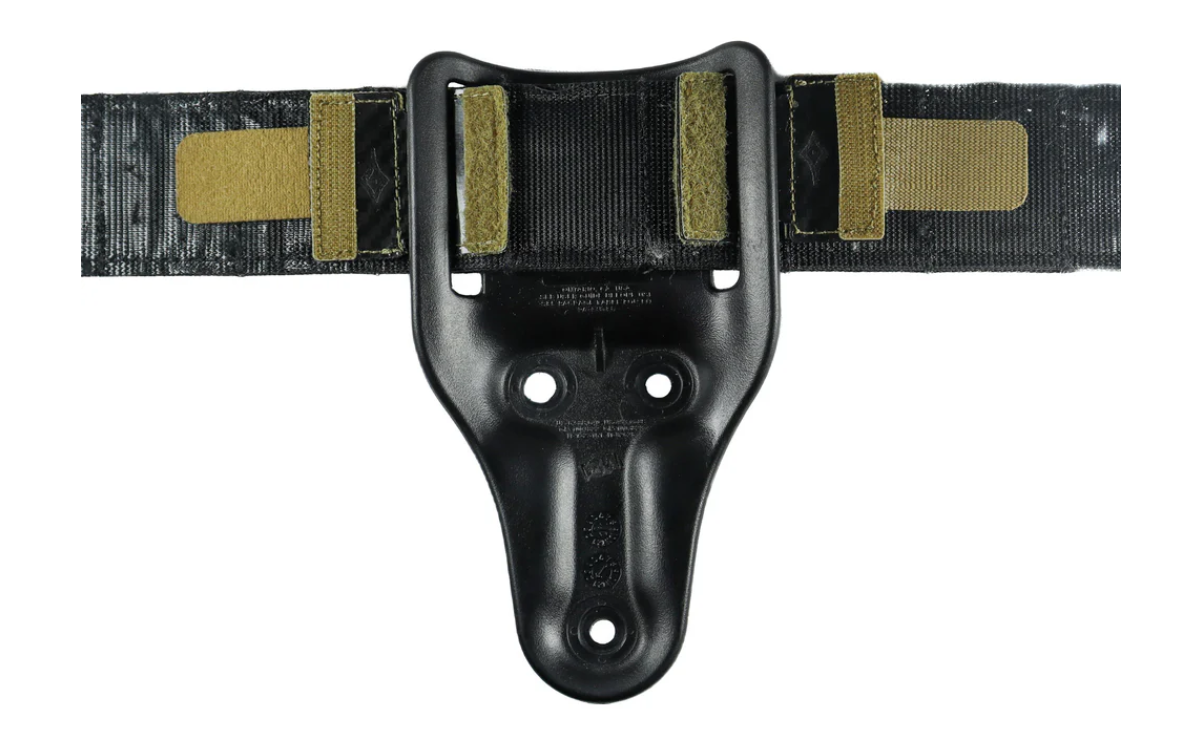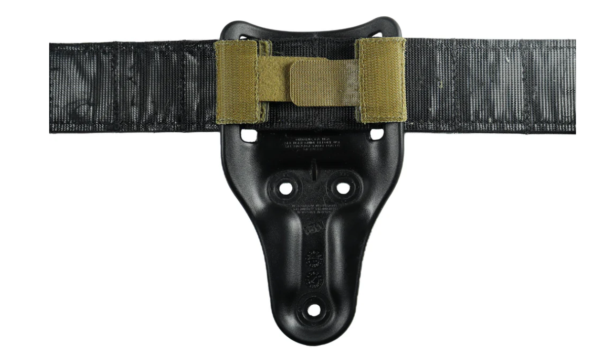 Este accesorio ha sido diseñado para resolver un problema común en el uso de cinturones tácticos: el deslizamiento de fundas y porta cargadores de polímero a lo largo del mismo.