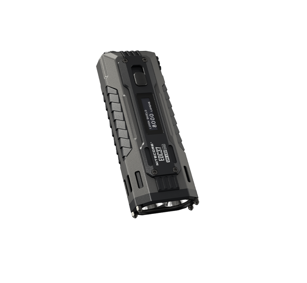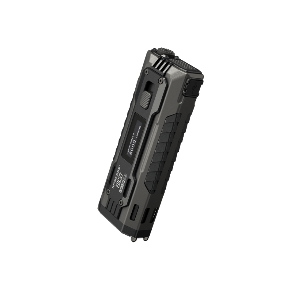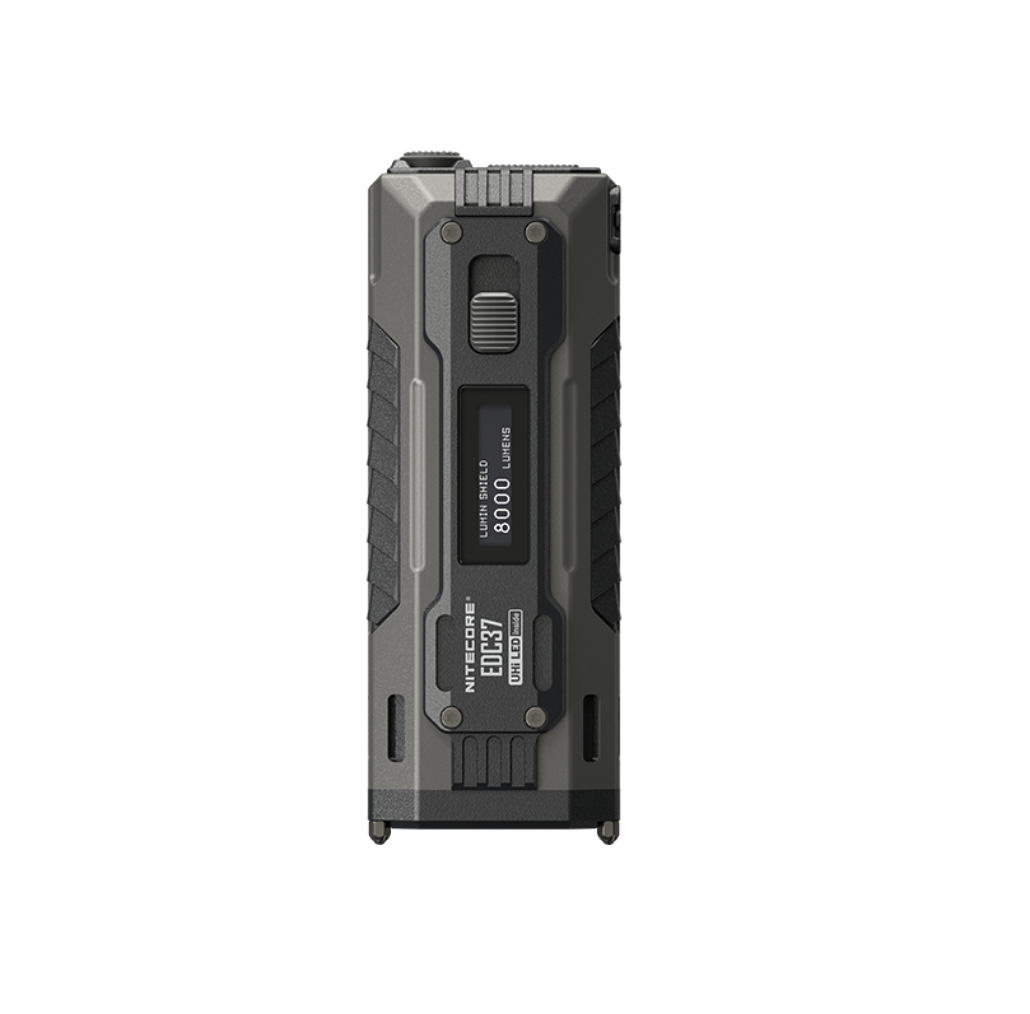 Alimentado por la batería de alta capacidad de 8.000 mAh, el EDC37 utiliza 2 LED UHi 20 MAX para producir un escudo de lúmenes y estroboscópico de 8000 lúmenes, así como el alcance de 420 metros, asegurando un control completo y preciso en cualquier situación.